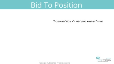 Bid To Position למה להשתמש בסקריפט ולא בכלל האוטמטי? סדנת אוטומציה Google AdWords
