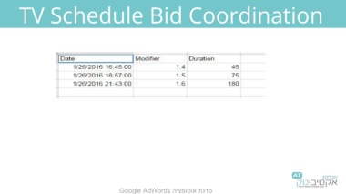 TV Schedule Bid Coordination Google AdWords סדנת אוטומציה