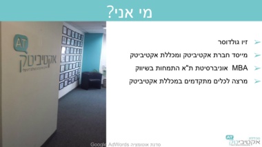 מי אני? ➢ זיו גולדוסר ➢ מייסד חברת אקטיביטק ומכללת אקטיביטק ➢ MBAאוניברסיטת ת"א התמחות בשיווק ➢ מרצה לכלים מתקדמים במכללת אקטיביטק סדנת אוטומציה Google AdWords