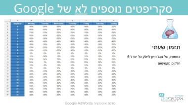 סקריפטים נוספים לא של Google תזמון שעתי בממשק של גוגל ניתן לחלק כל יום ל6- חלקים מקסימום סדנת אוטומציה Google AdWords