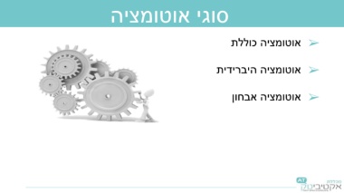 סוגי אוטומציה ➢ אוטומציה כוללת ➢ אוטומציה היברידית ➢ אוטומציה אבחון