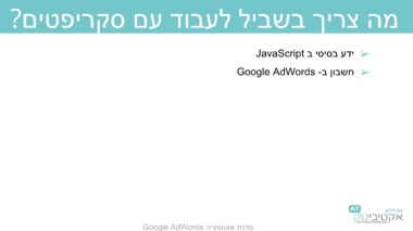 מה צריך בשביל לעבוד עם סקריפטים? ➢ ידע בסיסי ב JavaScript ➢ חשבון בGoogle AdWords - סדנת אוטומציה Google AdWords